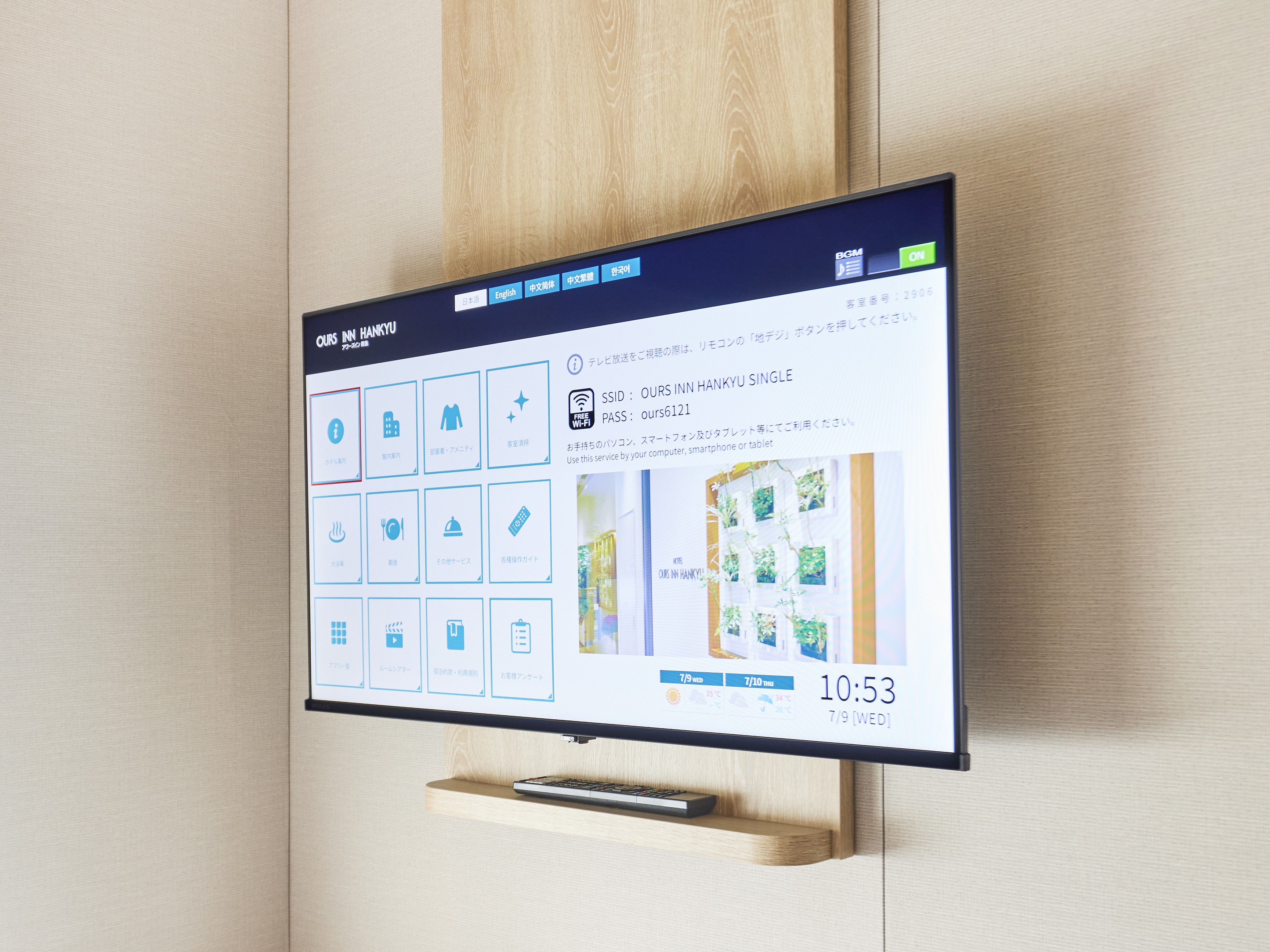スマートフォンやタブレットで観ている動画配信サービスを、テレビの大画面でお楽しみいただけます。ホテルインフォメーションもより見やすく快適にご覧いただけます。
